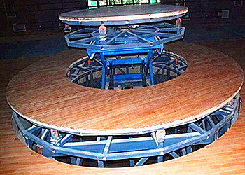 本款升降舞臺是一種可旋轉的特殊升降平臺,機械旋轉平臺設備中應用比較廣泛的設備之一,在專業歌劇院、舞劇院、話劇院,會堂、影劇院、多功能廳、演播廳、文化體育場館、酒店等文化娛樂場所。